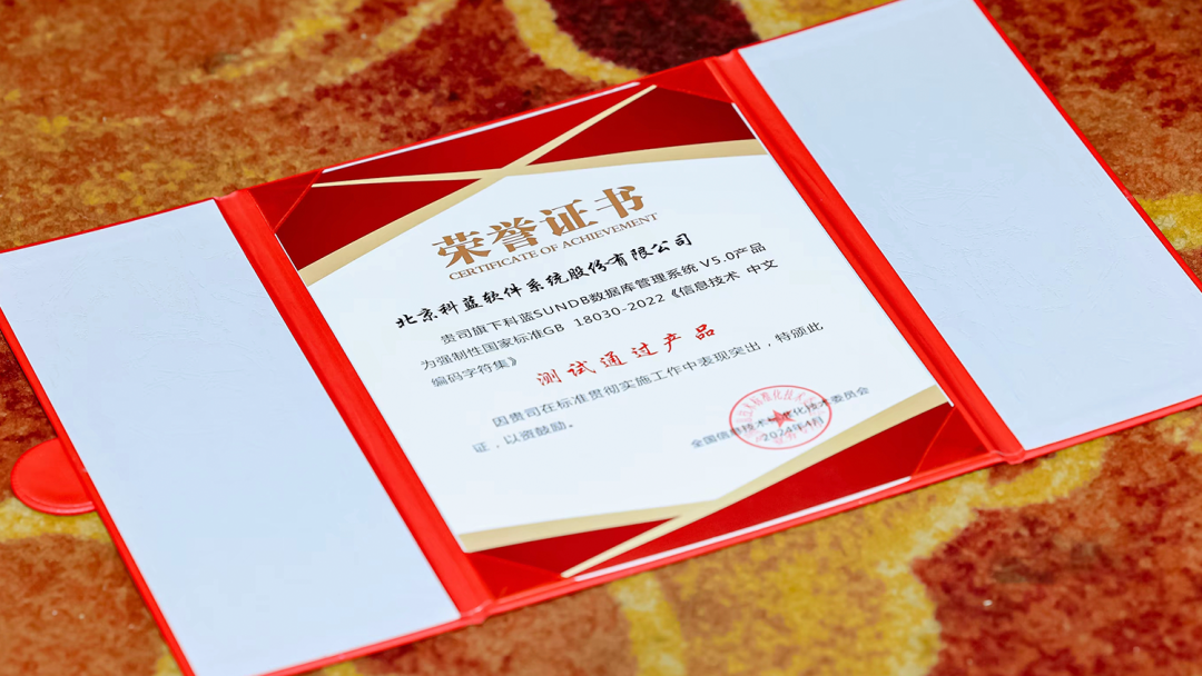 4月19日,由中国电子技术标准化研究院主办的强制性国家标准GB 18030-2022《信息技术 中文编码字符集》标准宣贯会暨首批通过认证测试产品发布会在京召开。在本次大会上,SUNDB数据库通过国家标准GB 18030-2022《信息技术中文编码字符集》认证,并获得GB18030-2022《信息技术中文编码字符集》最高级(3级)认证证书,这一认证表明SUNDB数据库在中文信息技术领域具备高度的标准化和规范化水平,能够很好地满足中文信息处理和交换的需求。