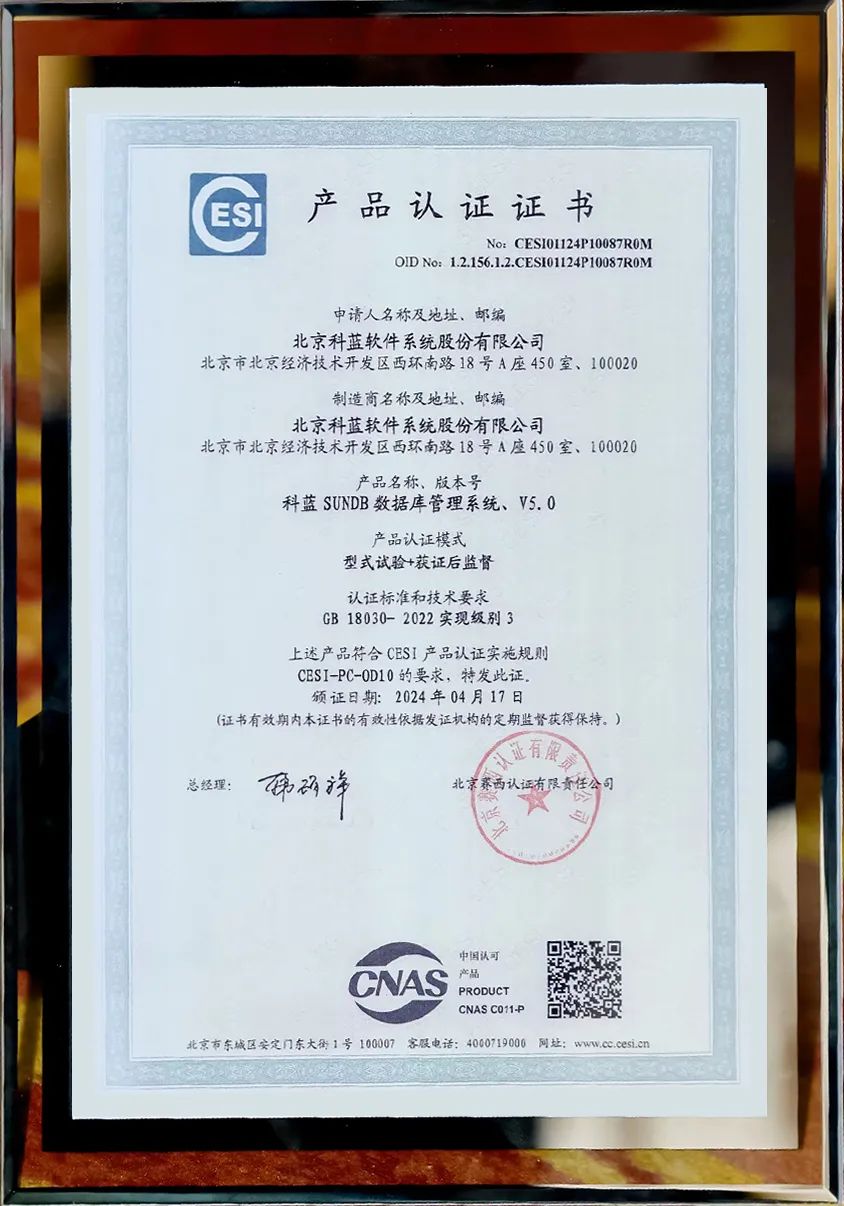 SUNDB数据库通过GB 18030-2022《信息技术 中文编码字符集》认证的意义重大。首先,这一认证标志着SUNDB数据库在中文信息技术领域具备高度的标准化和规范化水平。其次,这一认证有助于提升SUNDB数据库的市场竞争力和品牌价值。最后,这一认证还有助于推动国内数据库产业的发展。随着国家对自主可控和信息安全的高度重视,国产数据库产业迎来了前所未有的发展机遇。SUNDB数据库通过国家标准认证,为国产数据库产业树立了良好的榜样,有助于推动整个产业的健康发展。